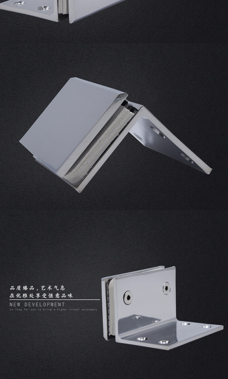 2、各種玻璃/木板隔斷的固定.玻璃/木板可以與地面垂直也可以平行安裝.適用于各種玻璃柜的固定連接.夾6-12mm玻璃
