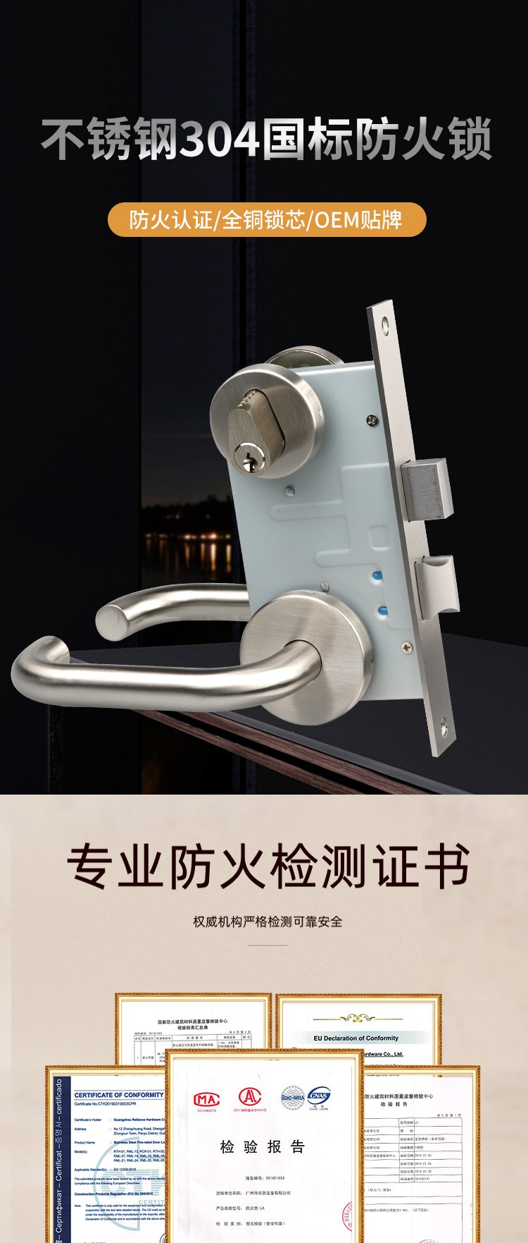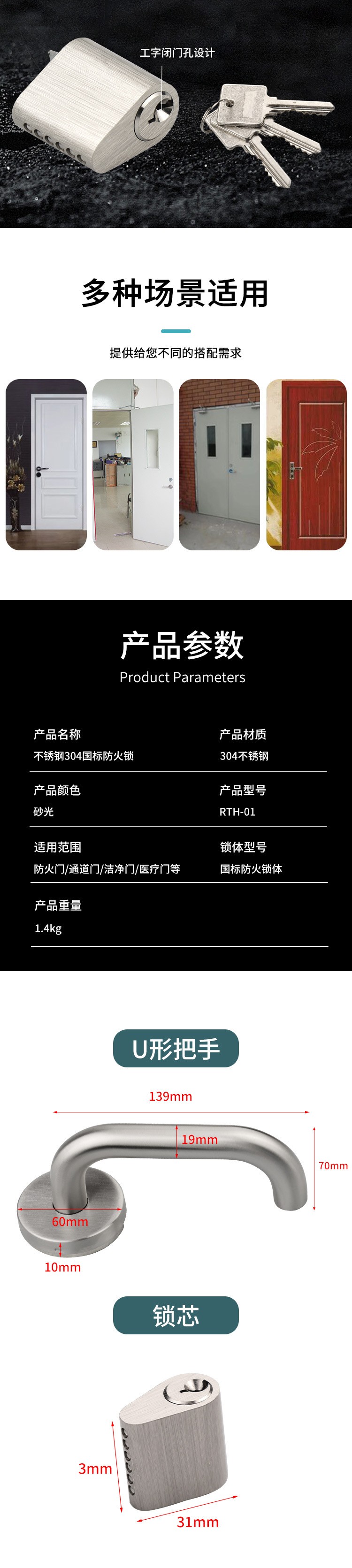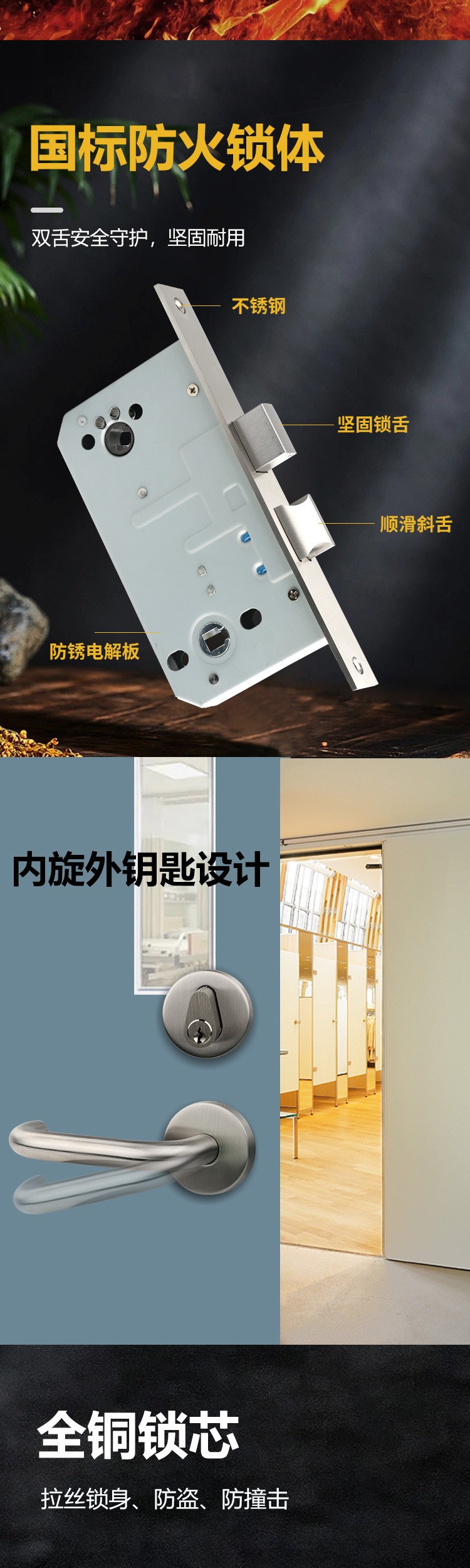 RTH-01 國標不銹鋼304高配防火門鎖