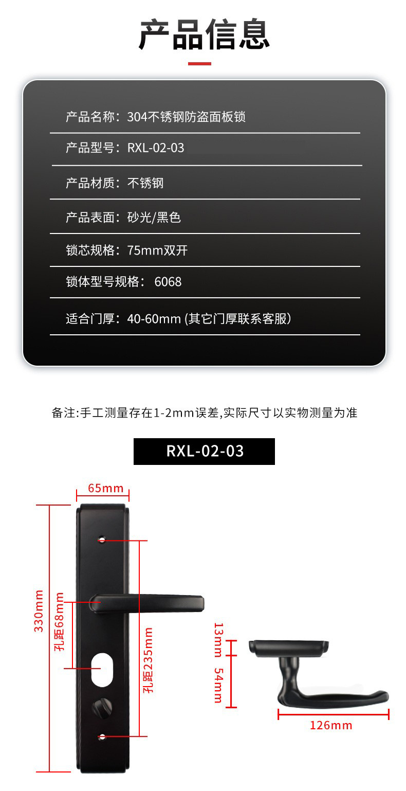 RXL-02-03 黑色防盜門鎖超C級鎖芯